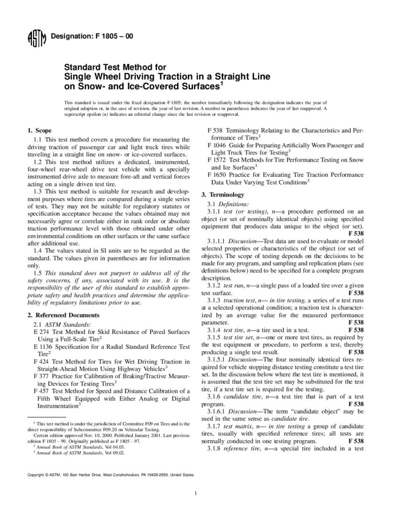 ASTM F-1805 Snow Traction Test Standard