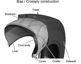 Sometimes bias tires have breakers, which are similar to belts except that breakers have the same angle as the body plies. Breakers are usually the same fabric as the body plies, but occasionally other materials are used, such as steel wire. For the purposes of this article, the comparison will be to bias tires without breakers.