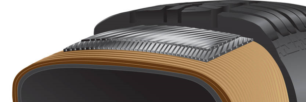 After trying belts made of various materials including the same fabric as the body plies, the industry has settled on steel wire.