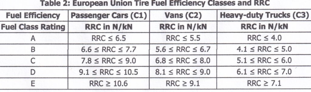 - There are different threshold levels for different types of tires. This solves a previous problem of tires with abnormally high RRC values (but not completely, so a special exemption can be requested).