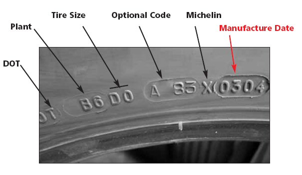 Update April 2015: NHTSA (National Highway and Traffic Safety Administration), the branch of the US government that regulates tires (and in this case, what is required to appear on the sidewall), has announced that they have run out of 2 digit plant codes (see below) and are making a change to a 3 digit plant code. I have updated the web page to reflect those changes.