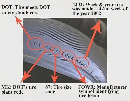 Update April 2015: NHTSA (National Highway and Traffic Safety Administration), the branch of the US government that regulates tires (and in this case, what is required to appear on the sidewall), has announced that they have run out of 2 digit plant codes (see below) and are making a change to a 3 digit plant code. I have updated the web page to reflect those changes.