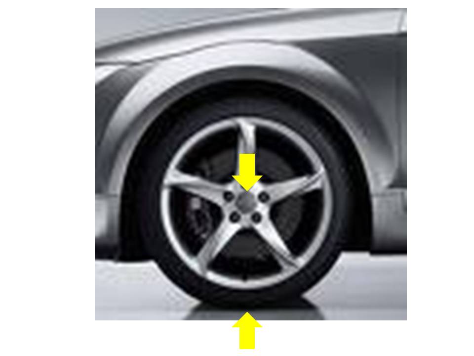 For the purposes of this analysis, we’ll neglect the weight of the rim and the tire. The weight of these components is small compared to the weight of the vehicle and doesn’t affect the outcome.