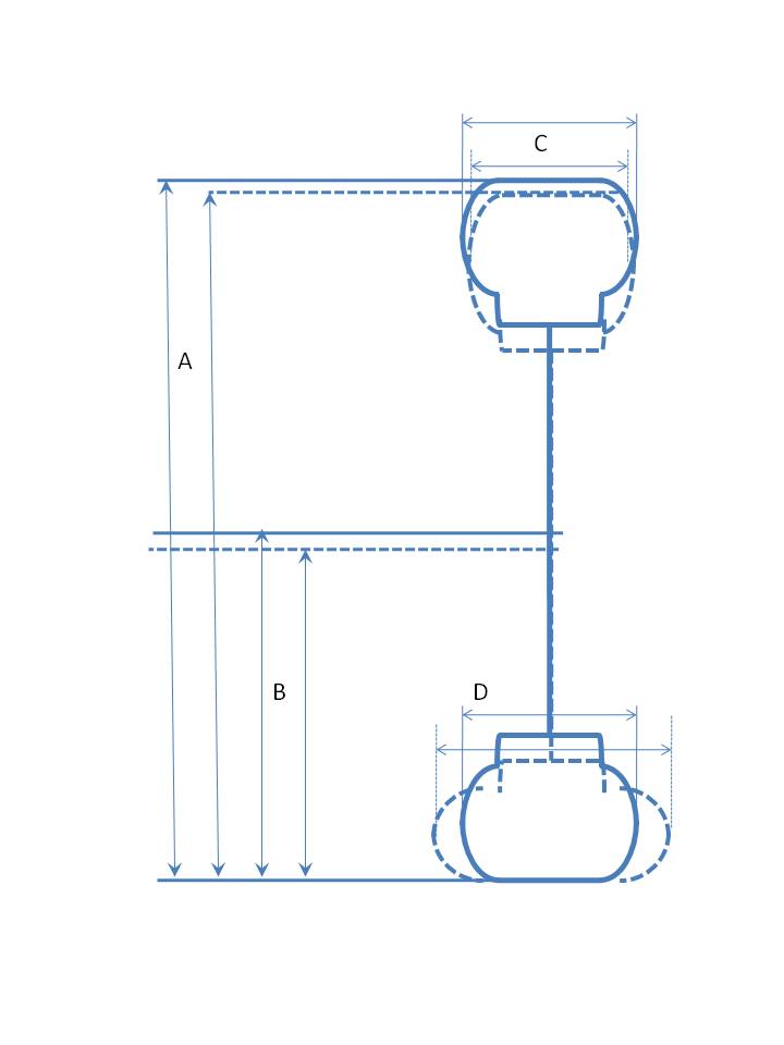 If the tire is doing all the support, then the entire tire is being distorted. The sidewalls near the footprint (contact patch) bulge out because the tread is being compressed towards the rim, but also, 180° from the contact patch (the “top” of the tire), the rim is pulling down from the tread. This should cause the section height to increase (which is dimensions A and B), as well as the sidewalls to be sucked in a little (which is dimension C and D).