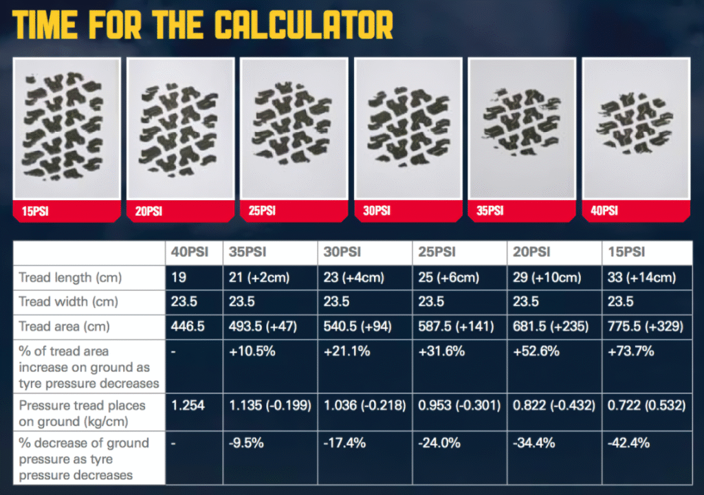 Personal note: I find it very interesting that the second video got footprints that are somewhat round at low pressures – that is, not at all rectangular. Those tires were poorly designed.