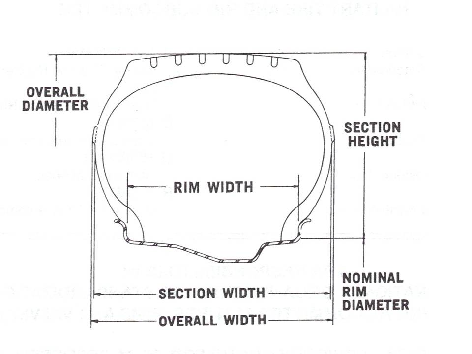 | One last thing before we leave this subject. There are quite a few “Tire Calculators” on the web. Here’s one: www.1010tires.com – Tire Calculator I don’t know of any of these calculators that refer back to the dimension tables in any of the yearbooks. Every one I looked at used the “dimensions” in the size and – for practical purposes – they get pretty close to the Overall Diameter listed in the yearbook. More importantly, when they compare tire diameters, the error is not worth mentioning. BUT, every calculator I have looked at has a flaw!!!! They assume the overall diameter is the same as the rolling diameterĀ AND THIS IS NOT TRUE!!! The rolling diameter is about 3% smaller than the overall (unloaded) diameter. No, it’s not the same as the loaded diameter (or better specified as the “Static Loaded Radius”. This is because the tire is not only “squished” at the bottom, but it “hangs” from the top.(“Squished” “Hangs” Surely there are some sweet sounding technical terms that cover them, right? I wonder what they are?) So it’s better to think of “rolling circumference”. This way it’s easy to understand that the belt seems to act like a tank track with the tread rubber on top of the “links” – and it is the distance between each link times the number of links, that determines the “circumference”.What this means is that so long as the calculator is doing comparisons, the “3% problem” isn’t a problem. But if they start calculating Revs per mile or gear ratios, there’s a built in 3% error- except for this tire calculator!!! Kudos, 1010Tires!! (Full Disclosure: These guys talked to me when they were revising their web site.)(OK, nit pick time!! They still didn’t get the width right. It should read “Section Width”, not “Tread Width”) |