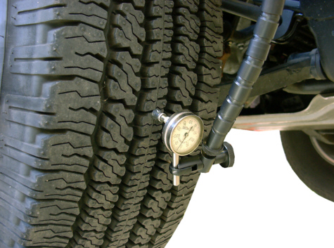 Because the vehicle “feels” the force, this is the most common way – and the way tire companies measure it – with a Tire Uniformity Grader (TUG) – Photo to the left. Notice how large the road wheel is.