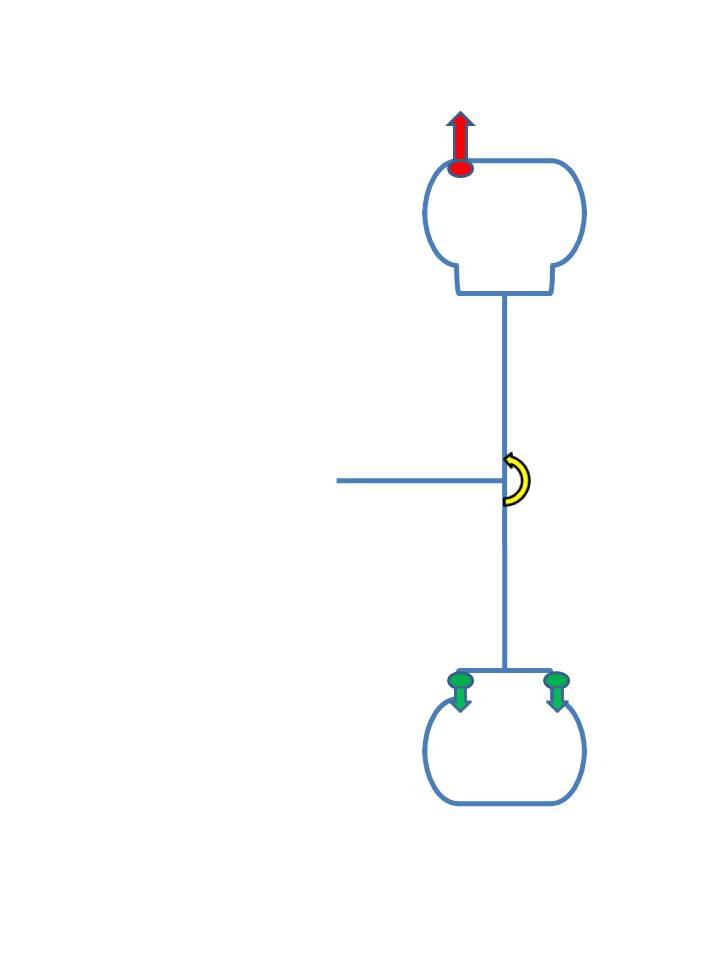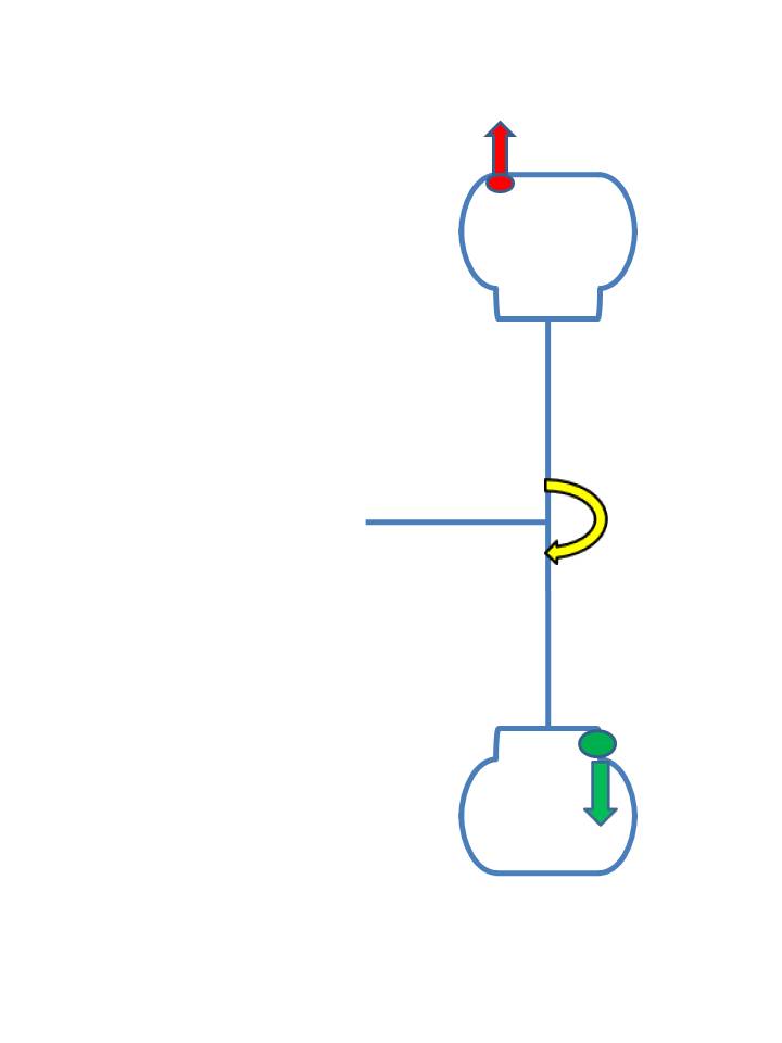When the 2 masses (the “glob” and the balance weight) revolve that introduces an oscillating moment (torque) at the axle – illustrated by the yellow arrow. This, of course, causes a back and forth twisting action, – and a side-to-side vibration.