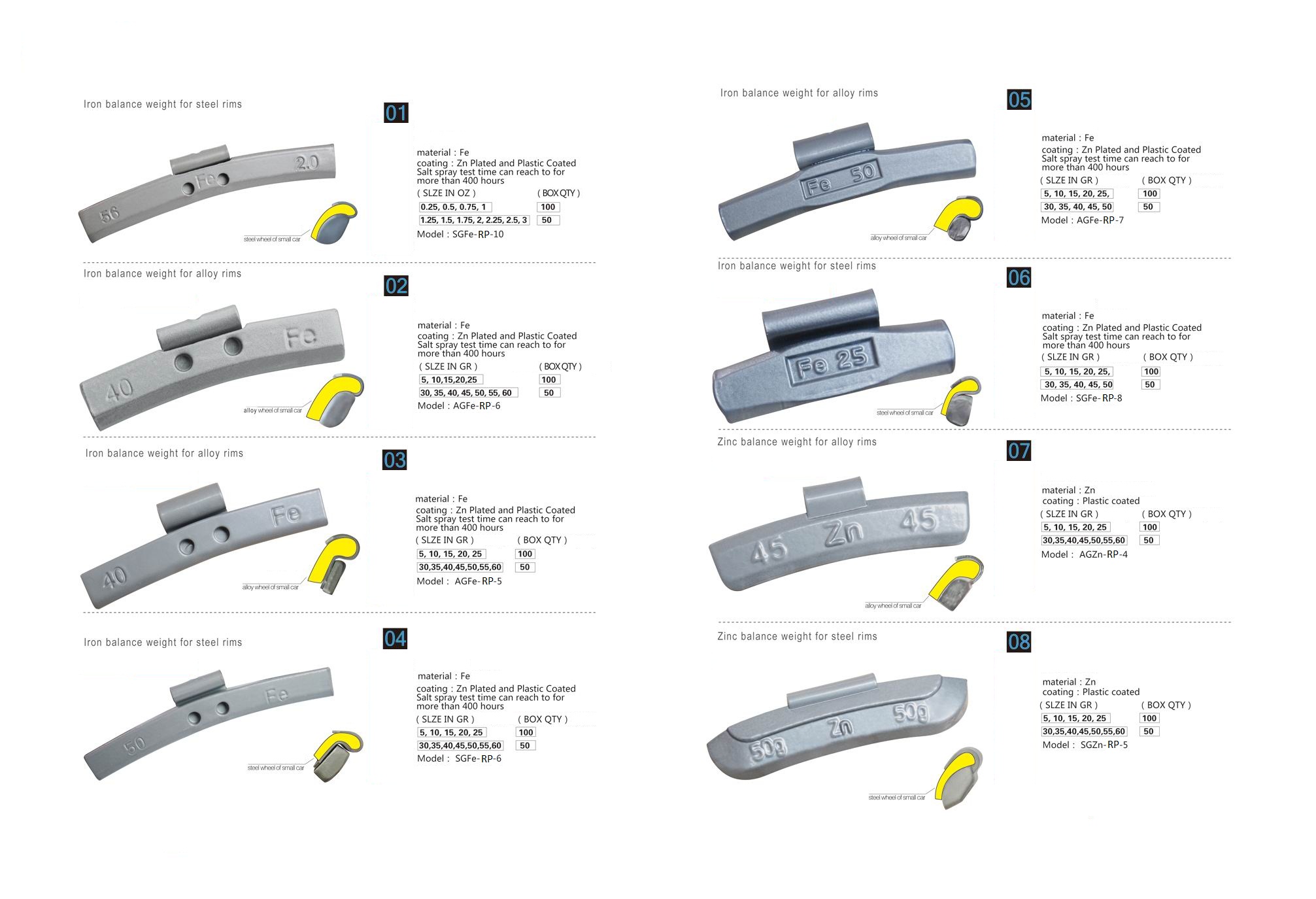 To the right (below) is part of a chart showing several of the different types of balance weights available.