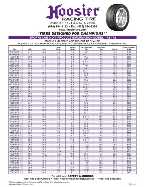 Some loose ends: Racing tires don't have to follow government regulations. That means not only don't they have a DOT number, they aren't tested for compliance to the regulations. So the specs have to be obtained from the manufacturer. They usually don't follow conventional sizing. When they don't, the overall diameter of the tire is usually part of the size. |