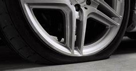 Out-of-Round Tires: OK, OK, the tire to the left is actually a flat tire - one with little or no inflation pressure - not a flatspotted tire. This is the best image I could come up with. This kind of flatspot does not photograph well. There are 2 different mechanisms going on here: