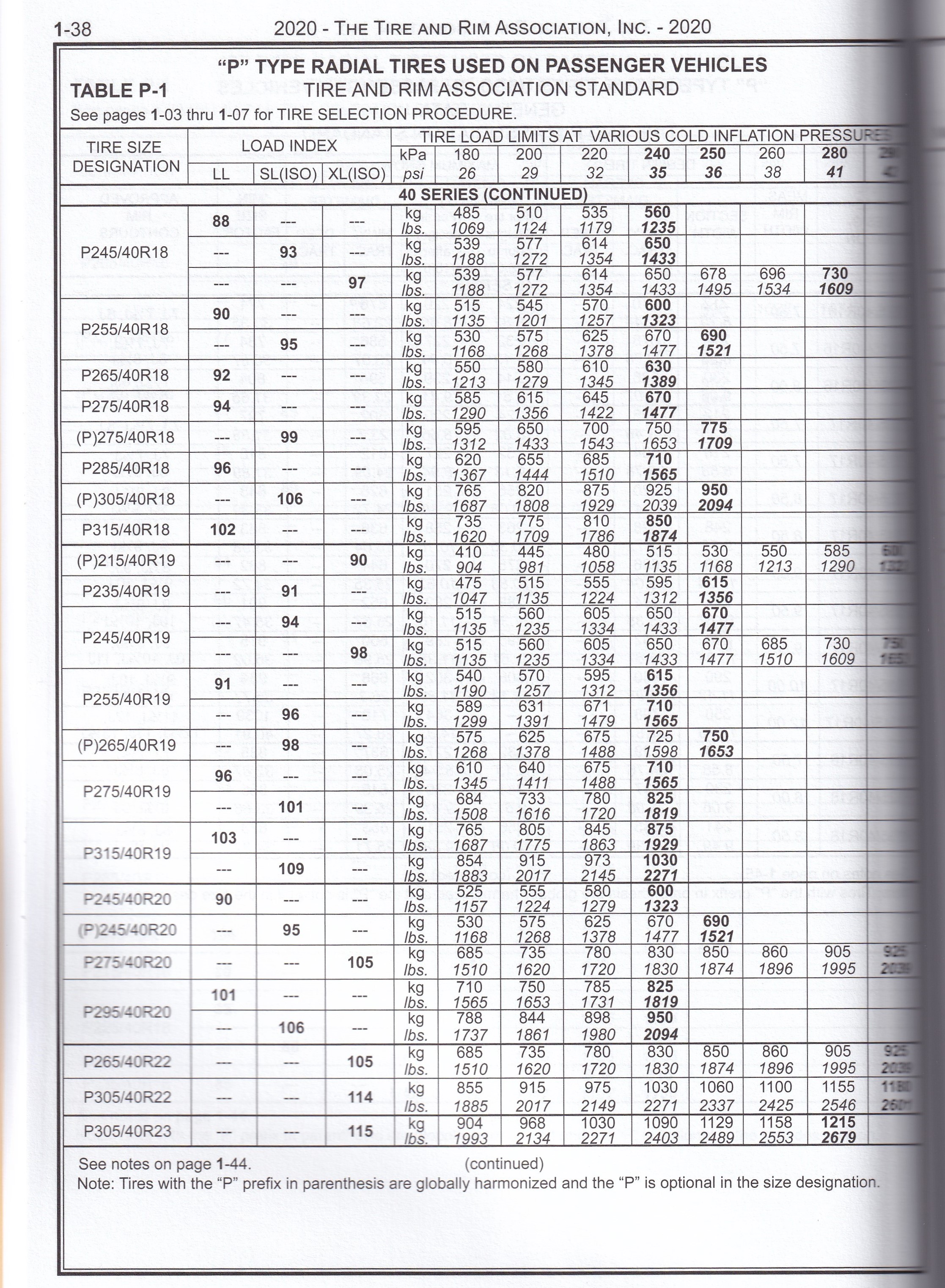 LL Tires LL (Light Load) tires are similar to SL (Standard Load) or XL (Extra Load) tires. They are Passenger Car (PC) tires with a given load rating - in this case less than an equivalent SL. Below is a page from the 2020 Tire and Rim Association (TRA) Yearbook showing some of them. |