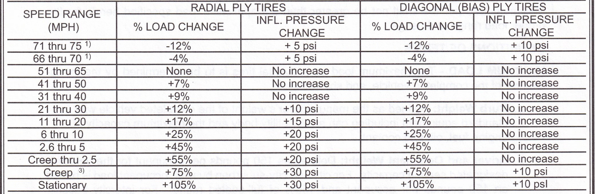 Side Note: If you do the math, the above table says that a truck tire can carry 170% of the rated load if it is stationary. What kind of vehicle would you use this information for? How about a mobile crane - and if I was a mobile crane design engineer, that would be good to know! |